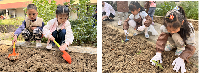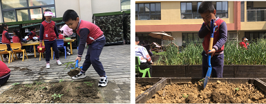 随着向日葵的长大,我们为一部分向日葵进行了移植。