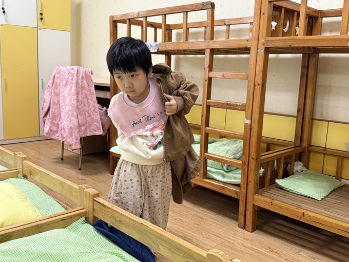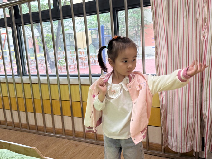 看,小朋友们起床了在穿衣服呢!通过穿衣服儿歌,外套很快穿好啦!