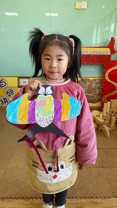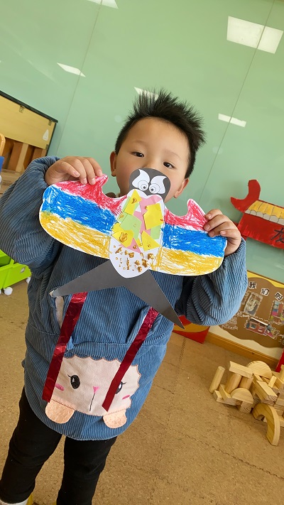 涂一涂、贴一贴,美丽的风筝完成啦!
