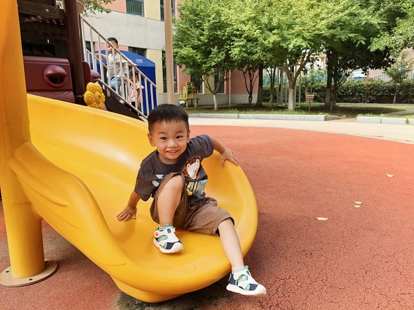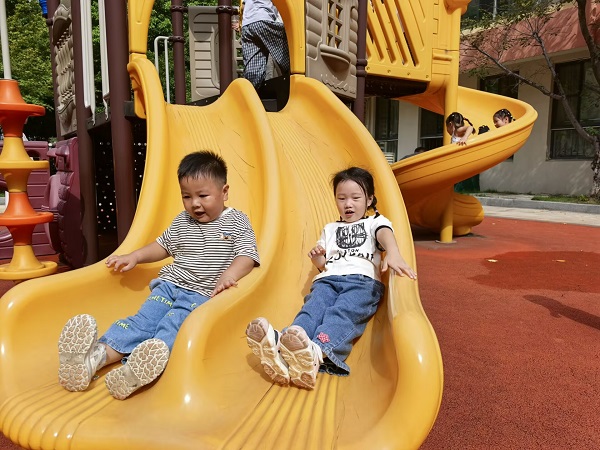 这是孩子们第一次在幼儿园玩滑滑梯,和好朋友们一起玩可真开心呀!