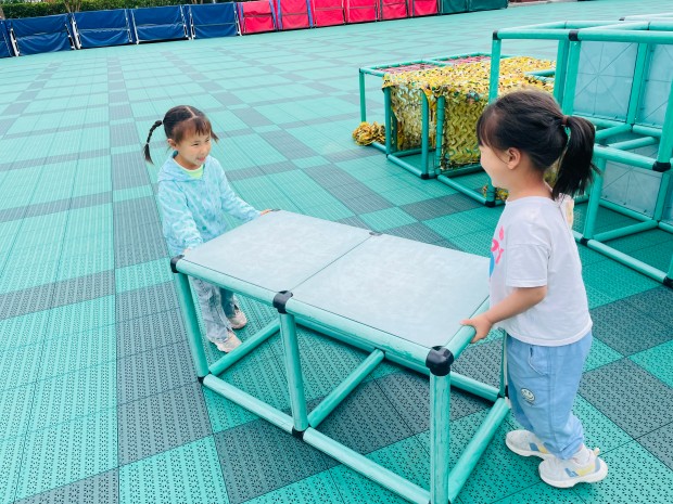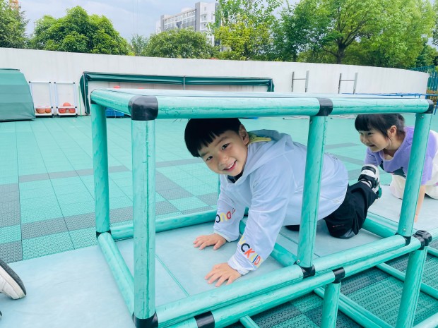 “今天的体育游戏玩什么呢?不如我们自己来设计一条游戏赛道吧!”