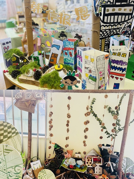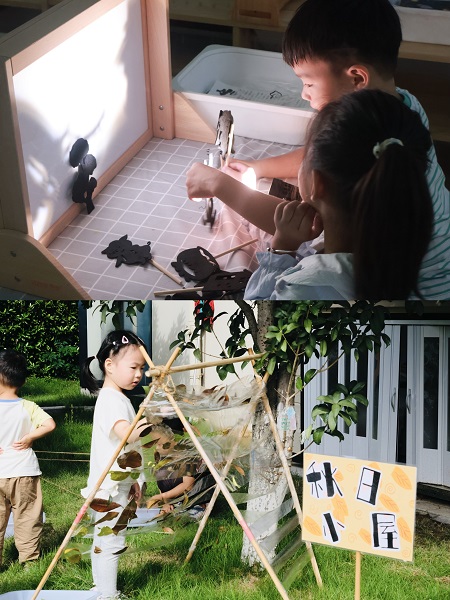 教师们带着“德美”课程的视角,深入室内外游戏现场,进行沉浸式观察与研判。一是观察幼儿的创造性表达:聚焦于幼儿在自然场域中的游戏状态,看其如何利用材料进行语言表达、绘画表征与同伴合作,是否展现出自主与创造的活力。二是研判材料与空间的育人价值:分析游戏内容与自然场域是否和谐融合,空间布局是否便于幼儿操作与探索;审视材料投放是否具有层次性与梯度,能否支持幼儿在操作中实现经验的递进与深度学习。