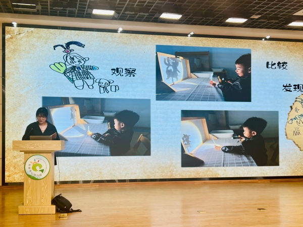 在案例分享环节,各年级组生动呈现了幼儿深度学习的轨迹:小班幼儿在制作“甜味桂花糕”中,通过动手操作探索食物变化的奥秘;中班“皮影戏小剧场”的孩子们,在光影区通过持续观察、比较与发现,主动建构着关于光影的科学认知;大班“扎染小故事”则展现了幼儿在反复试错、调整策略中分析原因、解决问题的探究过程。
